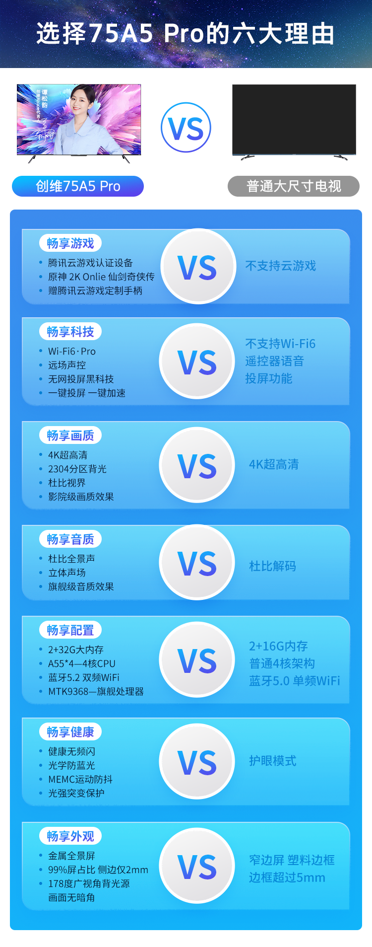 屏幕音效:屏幕4K画质,画像很清晰,防蓝光防抖,看着舒服,JBL全域音响系统,声音好听,