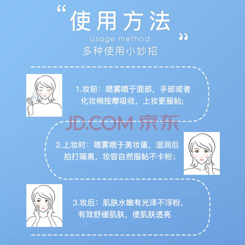 喷起来很清凉,不会油腻,补水效果好,保湿,味道特别清香,值得入手,姐妹们快冲呀