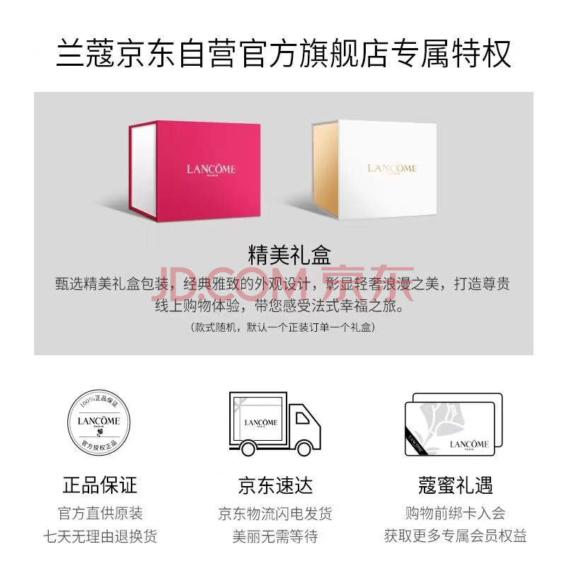 第一次买兰蔻产品,包装粉粉嫩嫩的,看着就舒服,打开盒子看到的也非常暖心,产品质感轻薄,没有那么厚重,我是属于油皮的,用起来清爽,觉得很好吸收,挺水润的,这款的香味不是特别浓郁,淡淡的香味给人心舒畅的感觉,一下子就放松了,总体来说还是不错的,用完还会来的,如果能赶上更好的活动,还会果断入手的,推荐点赞???快递小哥一如既往的好???